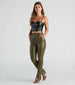 Some days you want an edgy-chic vibe and these PU high-rise pants are it! They feature a front button and hidden zipper closure. belt loops. side pockets. and a skinny-leg design with front slit hems. Complete the look in a corset top for a music concert!