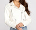Edgy & so chic. this faux leather jacket is a total must. With its moto style detailing and light pastel hue. you won't find a more spring ready jacket!