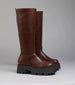 An absolute edgy essential. these faux leather boots elevate your outfit with a platform lug sole and under-the-knee length shaft. perfect for styling with jeans or a skort!