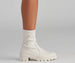 Get yourself some edgy kicks like these lug booties! They feature a round toe. side zipper closure. and a fitted design on faux leather material. Complete the look in joggers and a graphic tee.