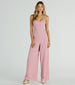 Bring the effortless allure to your weekend looks with this lace-up wide-leg jumpsuit! Designed with an airy woven fabric with a front knit lining. this jumpsuit will give you that breezy 'fit you love during the summer months. It features a sleeveless sweetheart neckline with cowl neck draping. a built-in padded bust. and spaghetti straps that lead to a bold open back with a cross-back and lace-up strappy design for a customized fit. The corset-inspired seams and high waist seam will create a snatched look. while the flowy wide-leg silhouette gives off those effortless vibes. Complete the look with espadrille sandals.