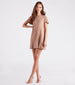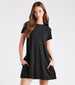 Style up this effortless and breezy short T-shirt dress for your casual weekend plans! It features a crew neckline. short sleeves. dual side pockets. a loose T-shirt fit. a short-length hem. and an A-line silhouette. The cotton-blend fabric has a moderate stretch. Pair with hoop earrings and strappy sandals.