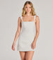 Effortlessly elevated. you'll love the simple yet chic details of this poplin mini dress. It features a sleeveless square neckline. thin adjustable shoulder straps with small bow trim accents. an underbust seam and dual vertical seams for a flattering look. and a short fitted A-line silhouette.