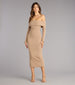 Minimal effort. maximum effect. This off-the-shoulder ribbed midi dress hugs in all the right places with a soft stretch knit that's made for cozy-chic moments. Style it with gold hoops and strappy heels for that quiet luxury vibe.