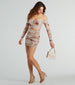 Your allure will be effortless in this darling off-the-shoulder mesh crop top! Sheer ruched fitted long sleeves adorn the sweetheart neckline that brings out your inner sultry and padded bra cups for support. With a hidden front hook eye fasteners and cropped hem. this top will effortlessly elevate any outfit. The stylish marble print and lightweight mesh fabric add an extra touch of elegance. Pair with the matching skirt for a fabulous look!