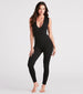 This sleeveless catsuit is an essential you need for effortless styling! It features a flirty plunge V-neckline. wide shoulder straps. a form-hugging silhouette. and a skinny-leg design on stretchy seamless rib knit fabric. Complete the look in a casual crop hoodie.
