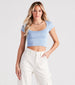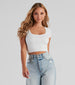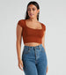 Show off an effortless style in this casual and cute crop top. It features a scoop neckline. short sleeves. and a cropped. form-hugging fit. Complete the look with your fave pair of high-rise denim and sneakers.