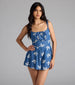 • Fitted bodice. high-rise waist. flowy shorts bottom