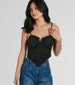 This sleeveless crop top is accented with trendy deets for that effortlessly cool vibe! Designed with a soft and stretchy faux suede fabric. this top offers a lightweight feel perfect for the spring and summer seasons. It features a ruched sweetheart neckline with a U-wired insert. spaghetti straps. and an angled hanky cropped hem on the fitted silhouette. Style with a mini skirt and ankle booties!
