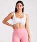 Style up this seamless tank bra for an effortlessly on-trend look! It features a sleeveless scoop neckline. tank shoulder straps. a scoop-back design. and a fitted. curved. cropped hem. The stretchy rib knit fabric offers a comfortable. form-hugging fit. Complete the look with leggings and sneakers for a cute athleisure vibe!