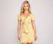 Get an effortlessly pretty look in this adorable mini dress. It features short puff sleeves. a sweetheart neckline with a tie-front detail. a stylish waist cutout. and a mini-length. curve-hugging silhouette with a flirty ruffled hem. The dress is composed of a lightweight woven fabric with an all-over disty floral print and features a stretchy smocked body. Complete the look with a charm necklace.