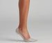 You deserve to shine in these elegant rhinestone pumps! Featuring closed pointed toes and stiletto heel. PVC sides. and a faux leather footbed. Complete the look in a flowy evening dress.