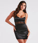 You'll be the elevated factor in this satin mini dress at the club! It features a sleeveless V-neckline. adjustable spaghetti straps. a sheer mesh waist insert. a bodycon silhouette. and a mini-length hem. Complete the look with statement earrings.