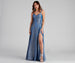 Bring the glitz and glamour in the gorgeous Eliana glitter formal dress. She features a sleeveless V-neckline with a padded bust. dual spaghetti straps that lead to an open back with a cross-back lattice design. and a high waist seam that flows out to a floor-length A-line silhouette with a chic front slit. The woven glitter fabric features a mini-length knit lining. Complete your look with rhinestone statement earrings.