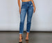 Keep it lowkey in jeans that are perf to pair with your dressy and casual tops! The dark-wash jeans feature a high-rise waist. a light distressing. and a straight-leg fit. Complete the look with a cable knit sweater and ankle booties.