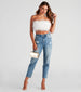 The look of your mother's jeans in a modern silhouette! The Ella mom jeans by Windsor Denim will be a staple in your closet. They feature a flattering high-rise waist with distressed accents. a curve-hugging mom-style leg. and cropped hem. The jeans are designed on medium-wash denim fabric with vintage-inspired color fading. Style with a flirty statement crop top and heels for wine night!