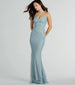 Create a princess moment at prom or your next formal affair in the Elowyn ruffle-back glitter mesh mermaid dress! Crafted with a stretchy sheer glitter mesh fabric with a full-length knit lining. this glitzy style is the enchanting dress of your dreams! Her sleeveless bodice is shaped with a V-neckline and adjustable spaghetti straps that lead to her bold open back with a cross-back strap design. Turn heads with her whimsical ruffled detailing that cascades down the length of the dress. adding glam allure to her curve-hugging mermaid silhouette. Complete your look with a luxe jewelry set and rhinestone heels.