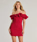 Every jaw will hit the floor when you wear the Ember glitter party dress that flaunts a ruffled off-the-shoulder neckline for dramatic flair and a sexy bodycon fit!
