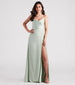 Effortlessly sleek with a timeless style. the Emeila satin formal dress is ideal for weddings or fancy parties. She features a sleeveless cowl neckline. tie-shoulder spaghetti straps. a fitted high waist seam. a floor-sweeping skirt with a wrap-front design creating a high slit. and a flowy A-line silhouette. The smooth satin fabric gives the dress a major chic factor and is designed with a sewn-in stretchy knit lining. Complete the look with a rhinestone necklace and earrings set.