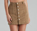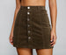 Keep it endlessly chic with a fab mini skirt to button yourself in! The skirt is composed of a high-rise waist. a multi-button down front. vertical seams. and a mini-length silhouette. The skirt is composed of a corduroy fabric that offers a form hugging fit with minimal stretch. Complete look with a bodysuit and over-the-knee boots.