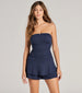 Stay endlessly fab in a chic romper! Romper features a sleeveless square neckline with a mini rosette accent. ruching. a pleated mini skirt overlay. and fitted shorts. Style with hair bows and heels.