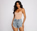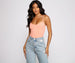 Get that sleek look with a bodysuit that showcases curves in all the right places. The bodysuit features a sleeveless V-neckline. spaghetti straps. and a thong bottom with dual-snap button closure. The bodysuit is composed of a ribbed compression knit fabric that offers a form-hugging fit with slight stretch. Complete look with high waist jeans and mules.Â