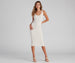 The perfect sleeveless midi sweater dress for every occasion! It features a V-neck. tank straps. and a bodycon silhouette on ribbed knit fabric with a moderate stretch. Complete the look in sleek hoops and heels.