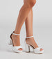 These platform heels are essential for creating the perfect retro vibe for your ootd! They feature an open square toe. a wide toe strap. block heel. and ankle buckle closure. on faux leather material. Complete the look in a printed matching set.