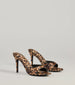 Step into these fierce leopard satin mules elevated with a sleek stiletto heel for fashionable struts! Pair with a purse.