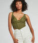 Show off an everyday allure in this sultry plunging linen corset top! Designed with a lightweight linen-blend fabric. it features a sleeveless sweetheart plunging neckline. pleating at the bust. an angled underwire and flexible boning to provide structure. and thin tank shoulder straps. The back hook and eye closures offer a secure fit. and the fitted. angled. cropped hem gives that snatched silhouette. Style with distressed jeans and booties!