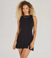 This sleeveless mini dress features a crew neckline. a flattering A-line silhouette. and a front slit accent. The soft rib knit fabric offers plenty of stretch and comfort.