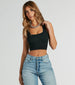 Your new BFF and everyday essential! This seamless tank top is perfect for layering or styling alone to create cute looks. It features a classic scoop neckline that flatters your bust. a racerback design. and a fitted crop hem on seamless double-lined stretchy fabric that feels so good against your skin! Complete the look in high-rise jeans. a jacket. and sandals for any casual occasion!