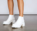 Stay on the trends with your everyday style in this pair of faux leather booties! They feature a lug sole. an almond toe. and a block heel. Wear them with a