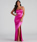 Make an elegant impression with a formal long dress that captivates from the moment you enter the room! Evie features a sleeveless square neckline. adjustable spaghetti straps. ruching at the waist. and an A-line silhouette accented with a high-side slit. The dress is composed of a satin-like fabric that offers a form-hugging fit with a moderate stretch. Complete the look with rhinestone heels and a matching clutch.