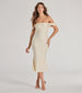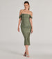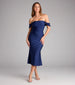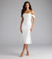 Every occasion is worth celebrating in this off-the-shoulder midi dress! The smooth and stretchy knit fabric includes a full-length knit lining for additional coverage. The off-the-shoulder neckline and short-sleeve cuffs add a touch of elegance. while the bodycon silhouette and flared midi-length hem accentuate your curves in all the right places. Complete the look with teardrop earrings and heels.