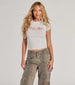 This sassy graphic tee features a crew neckline. short cap sleeves. a script reading "Extra Spicy Margarita Club." and a fitted cropped hem. Perf for happy hour. style with jeans and heels.