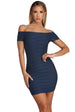 Demand attention in this Insta-worthy day dress! It features a flirty off-the-shoulder neckline paired with short sleeves. Dress has a round hemline and is composed of a textured knit fabric that offers plenty of stretch.