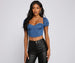 Keep your look fab in a denim bustier that keeps you on trend. bby! The bustier features a sweetheart neckline. short puff sleeves. corset seams at the bodice. and a cropped hem. The bustier is composed of a denim fabric that offers a form hugging fit with a moderate stretch. Complete look with high waist leggings and stilettos.
