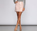 Put them all on notice girl with a sleek statement skirt! It features a high waist fit. a center zipper closure. faux side pockets and a mini length. Skirt is composed of a lined faux patent leather fabric with a croc-embossed pattern throughout. The garment offers a curve hugging fit with minimal stretch.