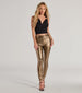 With a fabulous metallic sheen. these trendy faux leather skinny pants were made for a night out. They feature a high-rise waist. a classic five-pocket and belt loop design. and a flaunting form-hugging fit. Style with a crop top and stilettos!
