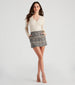 Get in the fall mood with this posh plaid mini skirt! It features a high-rise waist. side pockets. a short. fitted silhouette. and an all-over chic plaid print. Style with a cropped sweater and ankle booties.