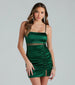 Cause commotion looking so fancy in this satin mini dress out on the town! It features a sleeveless square neck. adjustable spaghetti straps. a padded bust. and a sheer mesh waist trim. a flattering bodycon silhouette. and a front ruched seam atop a flirty hem slit. Complete the look with a glitter clutch and jewelry!