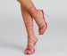 Reach new fashion goals in these stiletto heels featuring a square toe. lucite heel. and a lace-up design with self-tie closure. Complete your stylish fit with a midi skirt and crop top.