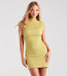 A fashionista like you will go crazy for this iconic mini dress! It features a mock neckline. cap sleeves. and a flattering bodycon silhouette on stylish textured mesh fabric with a stretchy knit lining. Complete the look in sleek sunglasses and booties for an edgy-fab vibe!