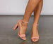 Bring it back to basics with heels that dress up your look. The heels feature a closed-back. an adjustable ankle strap. an open almond toe. a single strap over the toe. and a block heel. Complete look with a ruffled mini dress.
