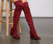 Be the major trendsetter of your squad in these faux suede over the knee boots! They feature a round toe with a lug sole. sturdy block heel. and tie back detail. Pair these boots with a faux leather mini skirt for an edgy look this winter season.