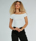 This simple yet chic short sleeve top will be a new fave style of yours! Made with a soft stretchy knit fabric. it features an asymmetric off-the-shoulder design with a chic boat neckline to showcase some skin. short sleeves. a mid-length hem. and a form-hugging fit. Style with cargo pants and sneakers for a casual dinner.