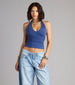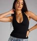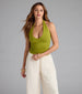 Get ready to feel the vibes of this elevated basic halter V-neck crop top! It's perfect for styling with any bottoms.
