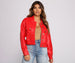 Want to feel bold with your look? Layer on this faux leather jacket for a chic. trendy vibe! It features a collared neckline. long sleeves with single buttons to cuff. a complete button-down front. and a cropped. relaxed fit. The jacket has gold detailed statement buttons and is composed of a croc-embossed faux leather fabric. Pair this jacket with high rise black skinny jeans for a night out.