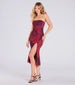 Walk like a work of art in this floral midi dress with a strapless neckline and front slit perfect for showing off your shoes!